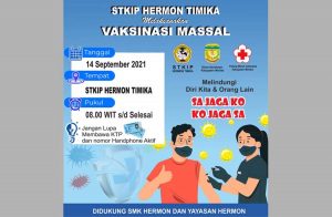 STKIP HT (TIMIKA) – STKIP Hermon Timika melaksanakan program vaksinasi Covid-19 di balai pertemuan kampus untuk dosen, mahasiswa dan masyarakat sekitar kampus pada Selasa (14/9/2021). Ketua Panitia Habibi Sutirta, S.Pd., M.Pd., Kepala Program Studi Pendidikan Jasmani STKIP Hermon Timika mengatakan